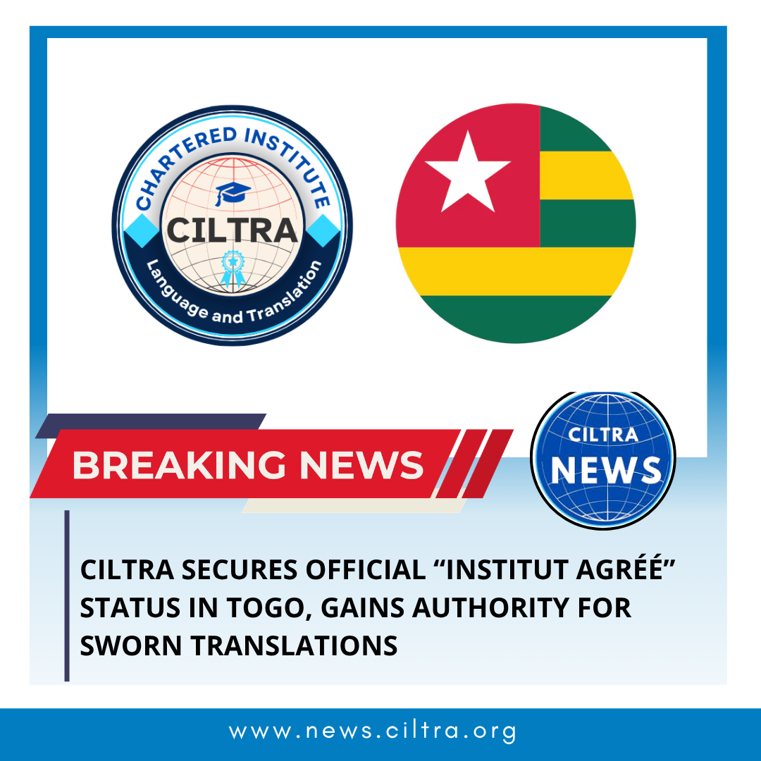 The Chartered Institute of Language and Translation (CILTRA) has reached a major milestone after being officially granted “Institut agréé” status by the Ministry of Justice of Togo.